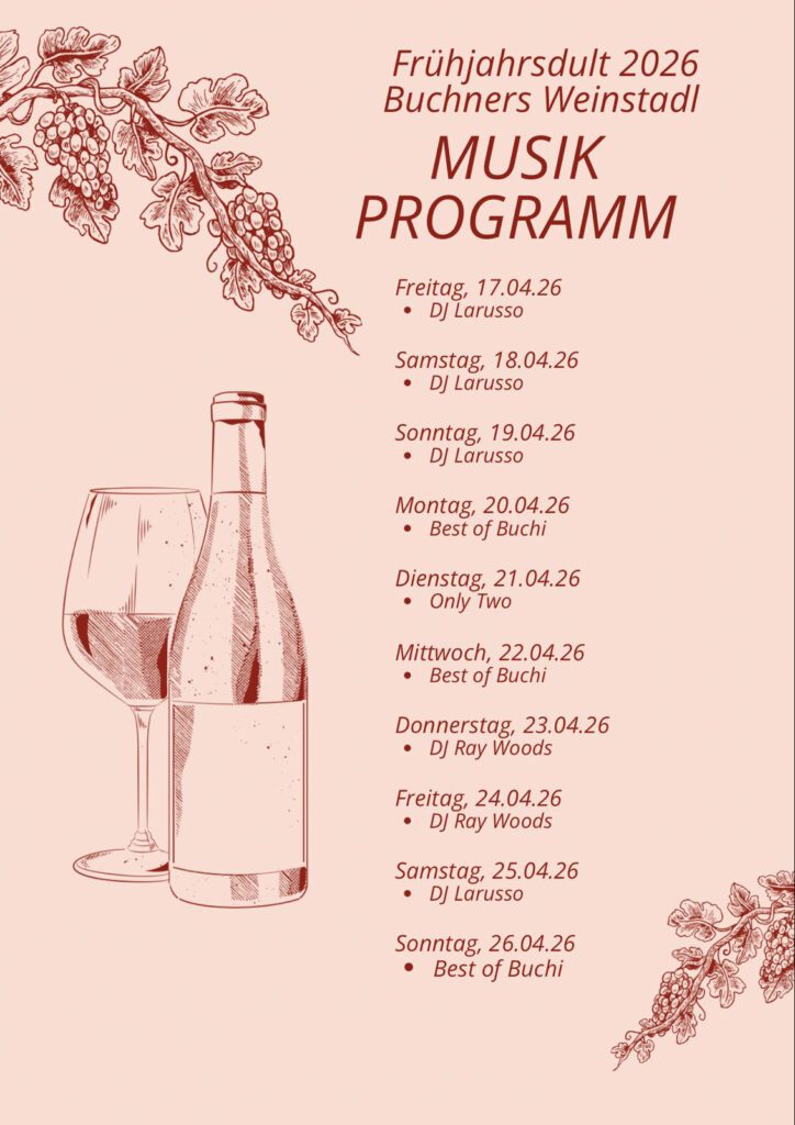 Stadl-Programm für die Landshuter Frühjahrsdult 2026 Posted by Admin Kommentare deaktiviert für Stadl-Programm für die Landshuter Frühjahrsdult 2026 Posted in Buchners Weinstadl Liebe Weinstadl-Fans, anbei findet ihr unser Programm für die Landshuter Frühjahrsdult 2026. Haben wir euer Interesse geweckt? Dann könnt ihr ab jetzt unter folgender Nummer reservieren: 0151 58869001